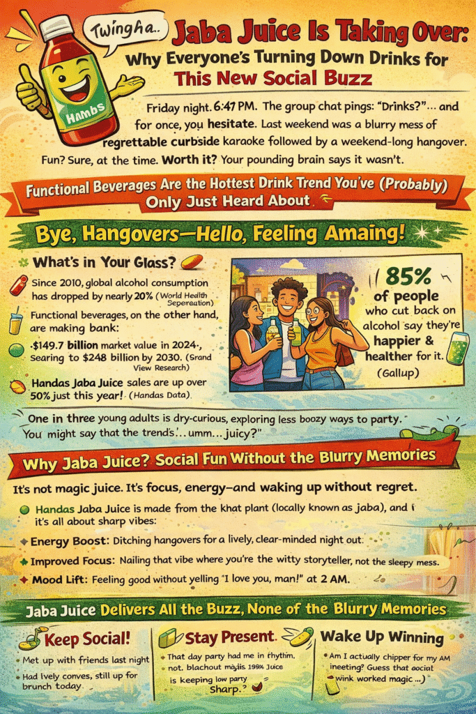Functional social drinks like Jaba juice contribute to a different kind of nightlife—one where connection doesn’t require numbing, and energy doesn’t come with collateral damage.